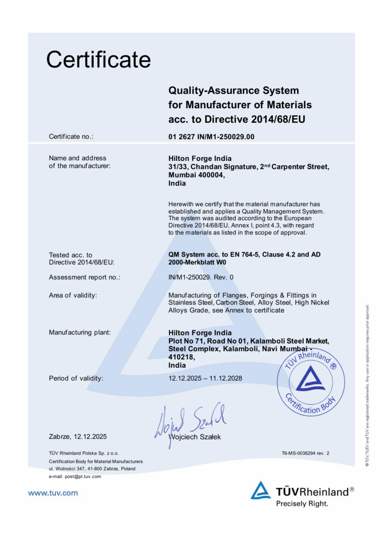 Hilton Forge India is designed according to national and international standards for raw material quality
